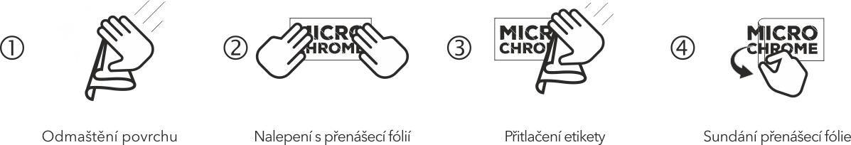 2. Chromovaný kov: Nápisy a symboly vyrobené z Microchrome mají vzhled chromovaného kovu, což zajišťuje jejich atraktivní a lesklý vzhled. Tento efekt dodává vašim výrobkům jedinečnou estetiku a luxusní dojem.
